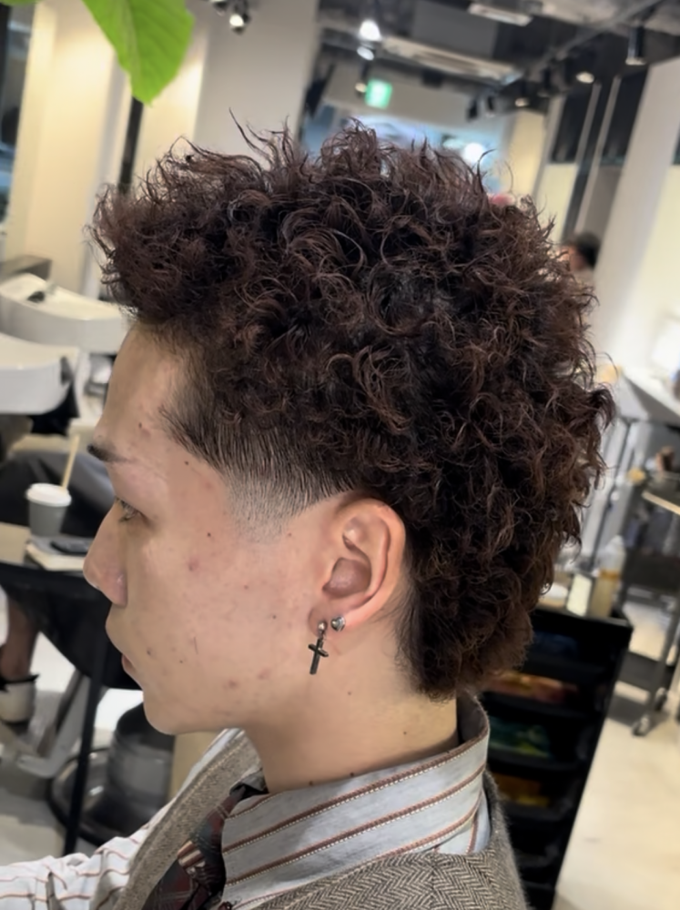 ●サイドだけテーパーフェードを入れたマレット仏陀パーマスタイルもかなり個性的でクールに決まります!