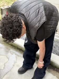 ベースカットで骨格、顔の形に合わせてパーマを巻いたときに丸くなるようにカットしているので